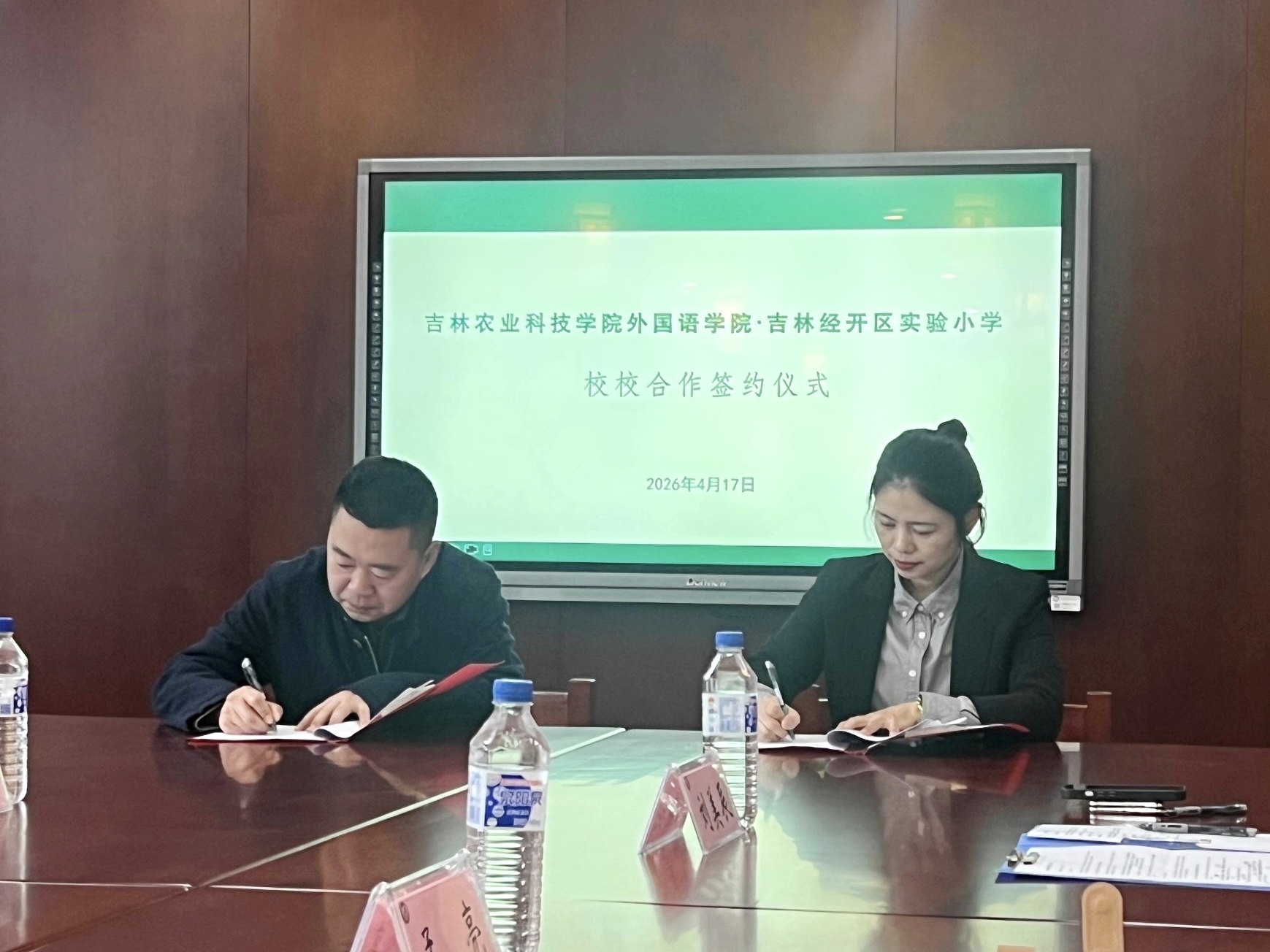 4月17日上午9时,吉林农业科技学院外国语学院与吉林经开区实验小学在我校图书馆305隆重举行校校合作签约揭牌仪式。此次合作旨在助力外语教育提质,搭建优势互补、资源共享、共赢发展的教育合作平台,为区域外语教育事业注入新活力。